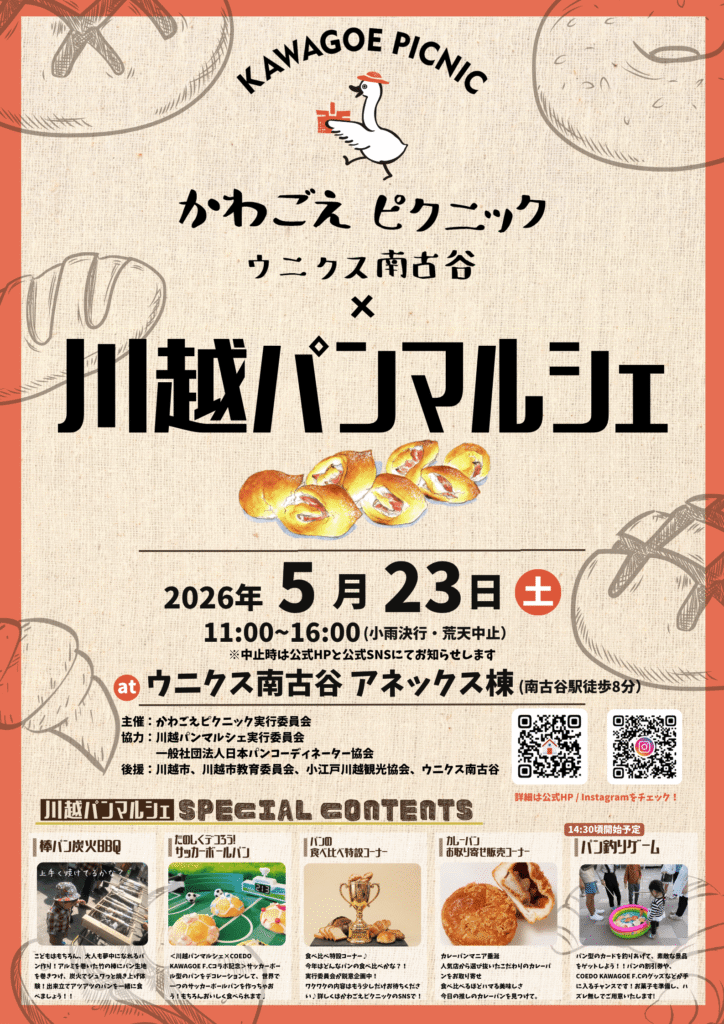 この度、2026年5月23日(土)11時~16時(予備日:なし、雨天決行・荒天中止)でかわごえピクニック×川越パンマルシェ@ウニクス南古谷を開催させていただく運びとなりました。